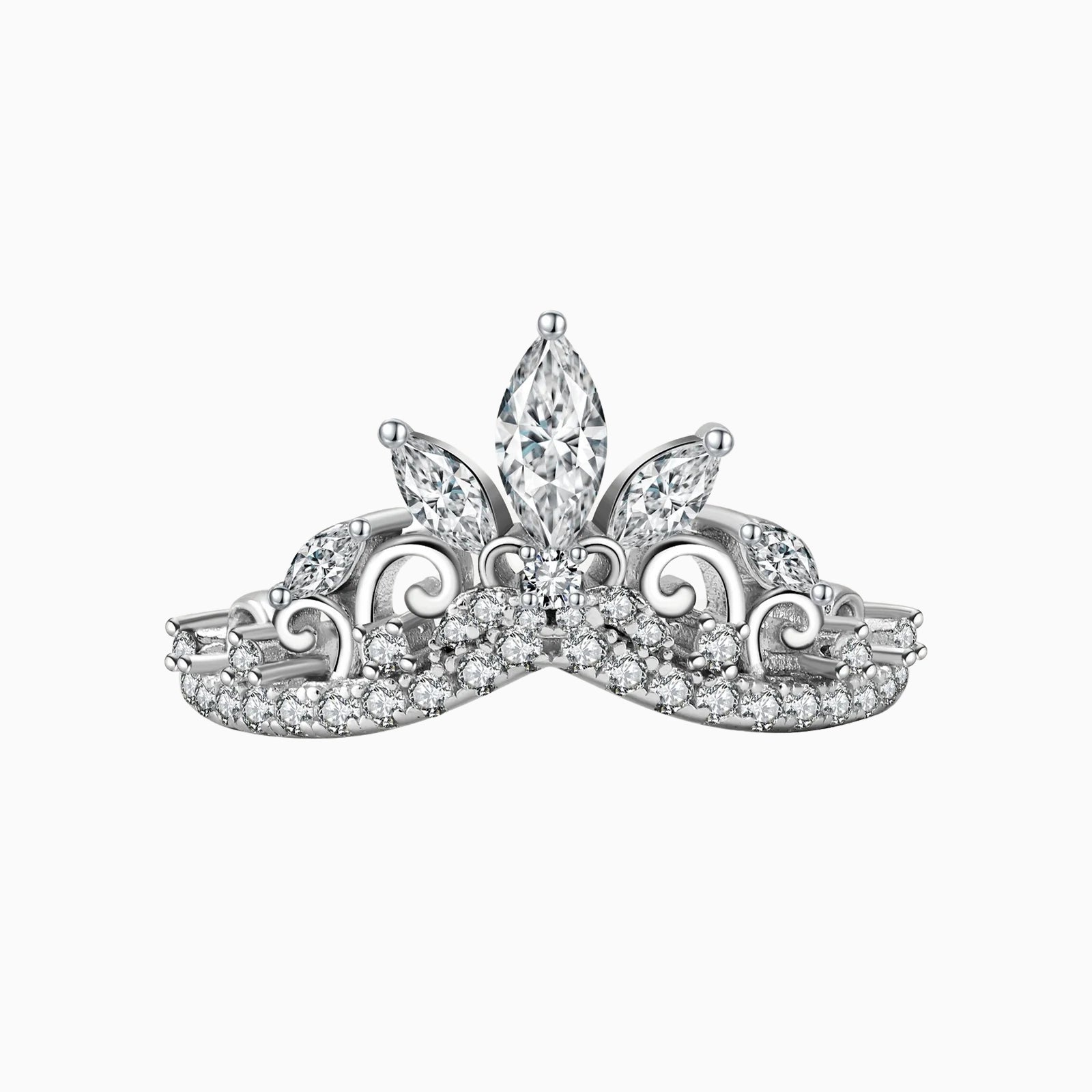 Exquisitely crafted from sterling silver, this majestic ring adds a touch of enchantment and fairy-tale sparkle to your style. Fit for royalty, this ring combines the regal detailing of a princess tiara with the timeless shape of a wishbone. Adorned with sparkling cubic zirconia stones, this ring will make you feel like the princess you truly are. The perfect gift to celebrate special moments and cherished memories.