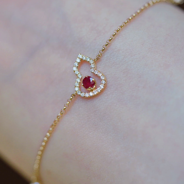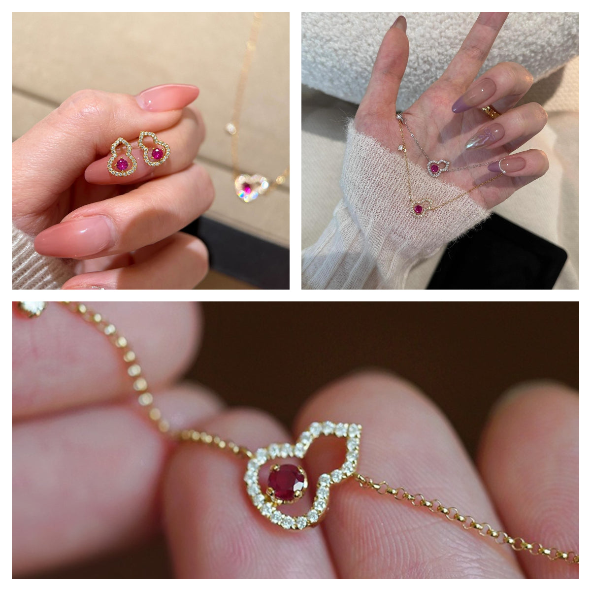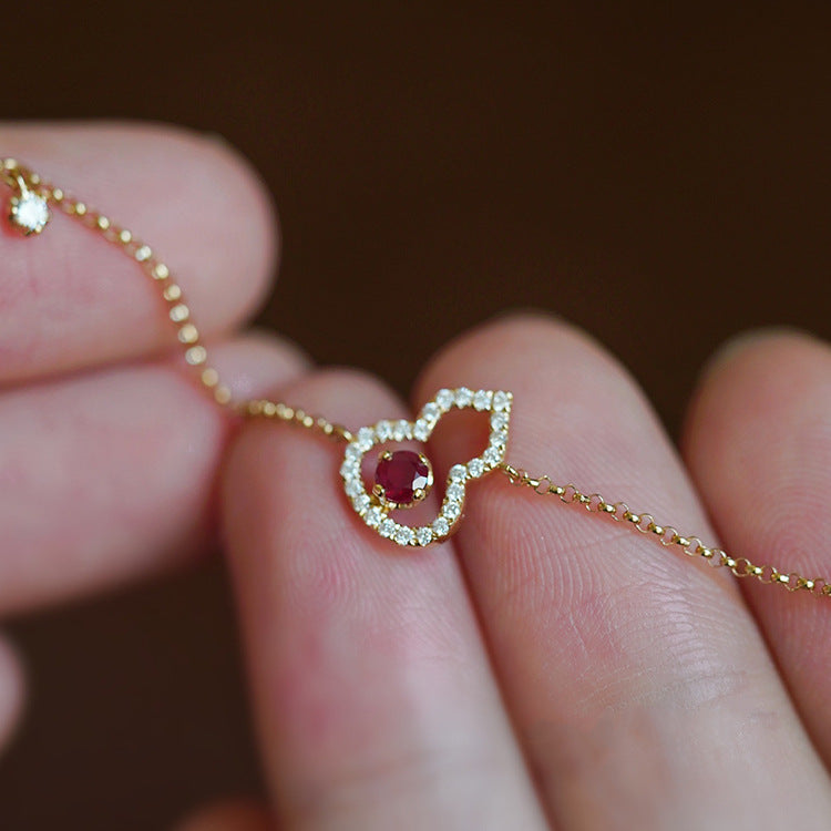 S925 sterling silver 18k gold-plated inlaid zircon gourd necklace bracelet earrings set
